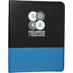 The Associate Ringbinder includes a 1” metal three-ring binder with a refillable lined 8.5” x 11.5” notepad. An inside front panel contains a flap pocket with 3 horizontal pockets and a 30 sheet ruled notepad and a pen loop.