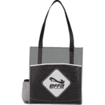 The Boardwalk Non-Woven Convention Tote has an open main compartment, front pocket, a side mesh pocket and comes with double 29 inch handles.