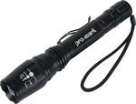 High intensity rechargeable flashlight with three selectable light levels, strobe and SOS modes.