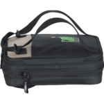 This lunch set is versatile with handles to carry upright or horizontal. High density thermal insulation. Zippered main compartment includes both a sandwich and snack container. Bottom zipper allows cooler to expand for 50% more storage. Ultra Safe™ leak-proof, easy clean PEVA lining.