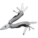 The Tonca 11-Function Multi-tool functions include a pair of pliers, a knife blade, a ruler and scale, a Phillips-head screwdriver, a flat-head screwdriver, a bottle opener, a can opener, saw blade, and nail file. Includes a nylon storage pouch with a belt loop. Imprint available on the multi-tool only.