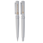 Exclusive The Brass Co® design. This set features high polished chrome upper barrels combined with contemporary satin chrome lower barrels with a striation pattern etched directly into the barrels. The mixture of satin and polished chrome accentuates the dimension of this style. Pens includes premium black German ink cartridges.